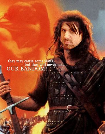 If my squee drives you that much up the wall, Livejournal has this nifty 'defriend' feature. You can defriend me, or filter me out without making a fuss, or you can filter me out and also make a fuss and talk behind my back about how annoying me and all of my friends are, I suppose. I can't stop you! But if you're waiting for me to get over this annoying stage and move on to another fandom, ummm. I haven't even watched TV or read any comics at all since I got into this fandom, so aside from that one week in July where I was randomly really into Harry Potter again (and that mostly revolved around wanting to turn Patrick into a werewolf), the odds of me getting into another fandom that you don't find as annoying are pretty fucking low. I'm here to stay. (And if you think that bitchily complaining about bandom is going to make people shut up instead of making the entire fandom get even louder about our squee and post even *more* un-cut, hi, did you only discover fandom yesterday?)